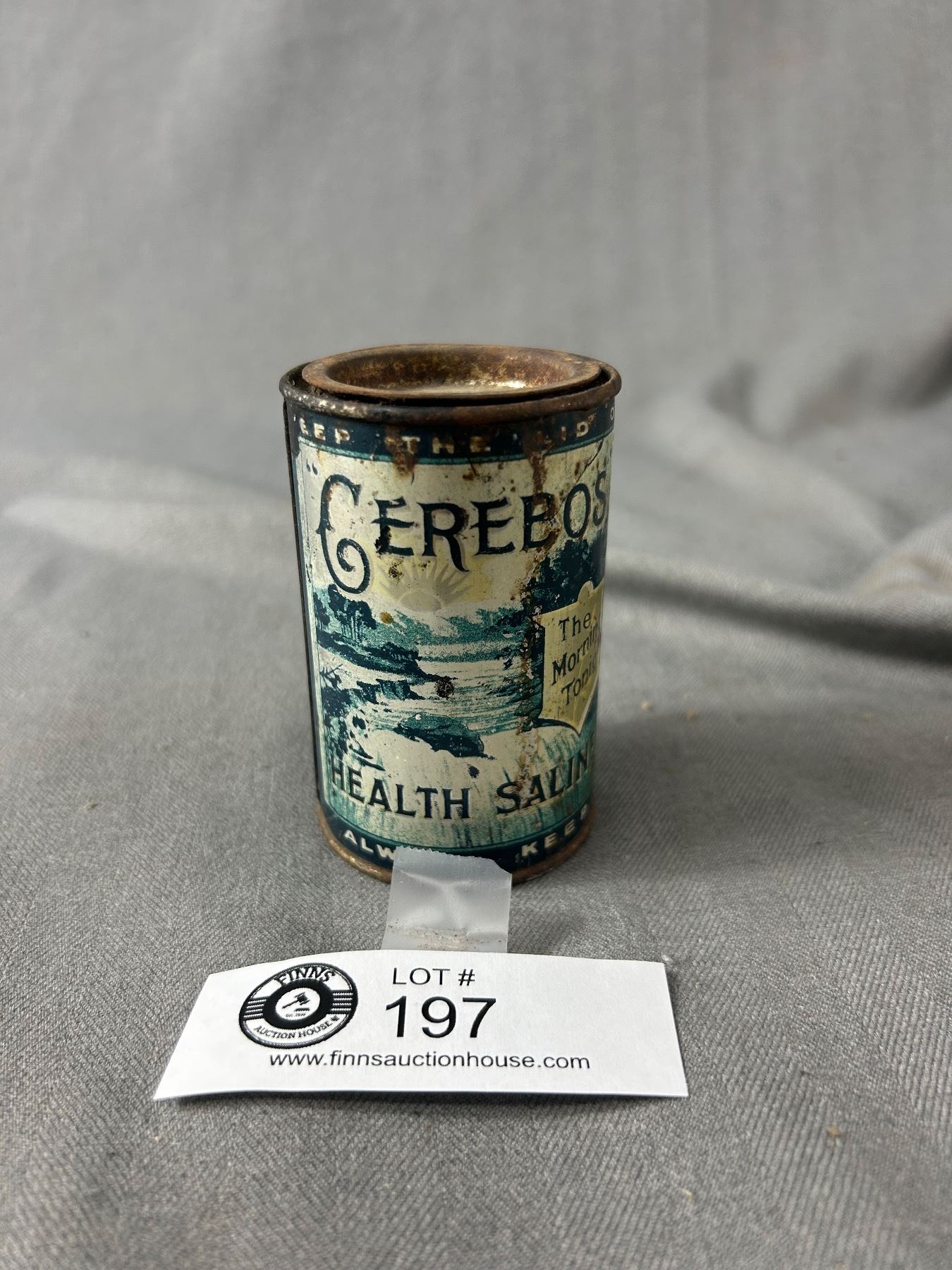 Victorian Era 1900's Rare Cerebos Health Saline Tin. Beautiful Graphics. Approx. 3 1/2" Tall