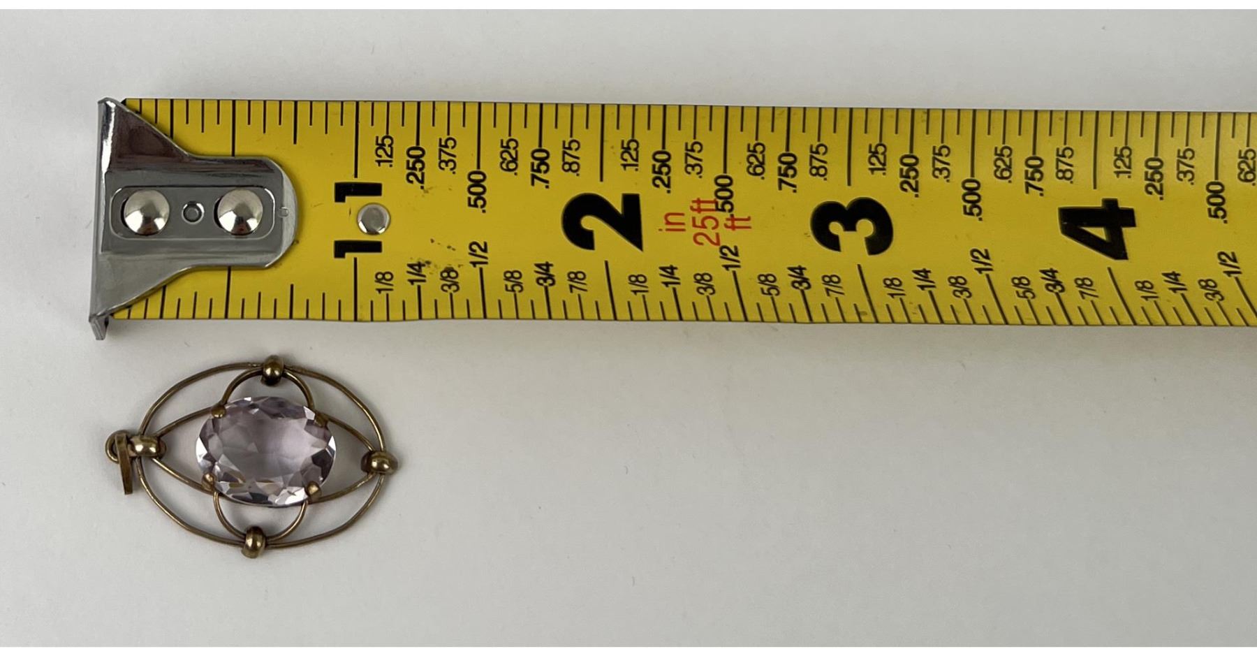 Nice old pendant. Stone is very light and tests as either amethyst or tanzanite.