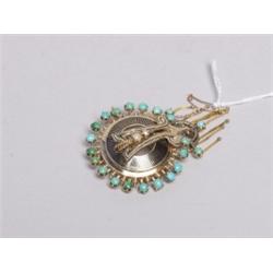 Victorian Fine Brooch Gold, enamelled pearl & turquoise with safety. Soft solder to pin.