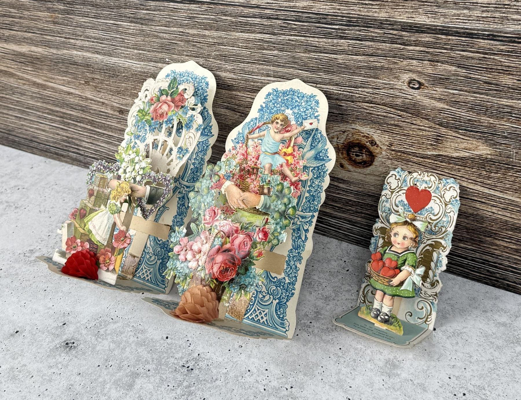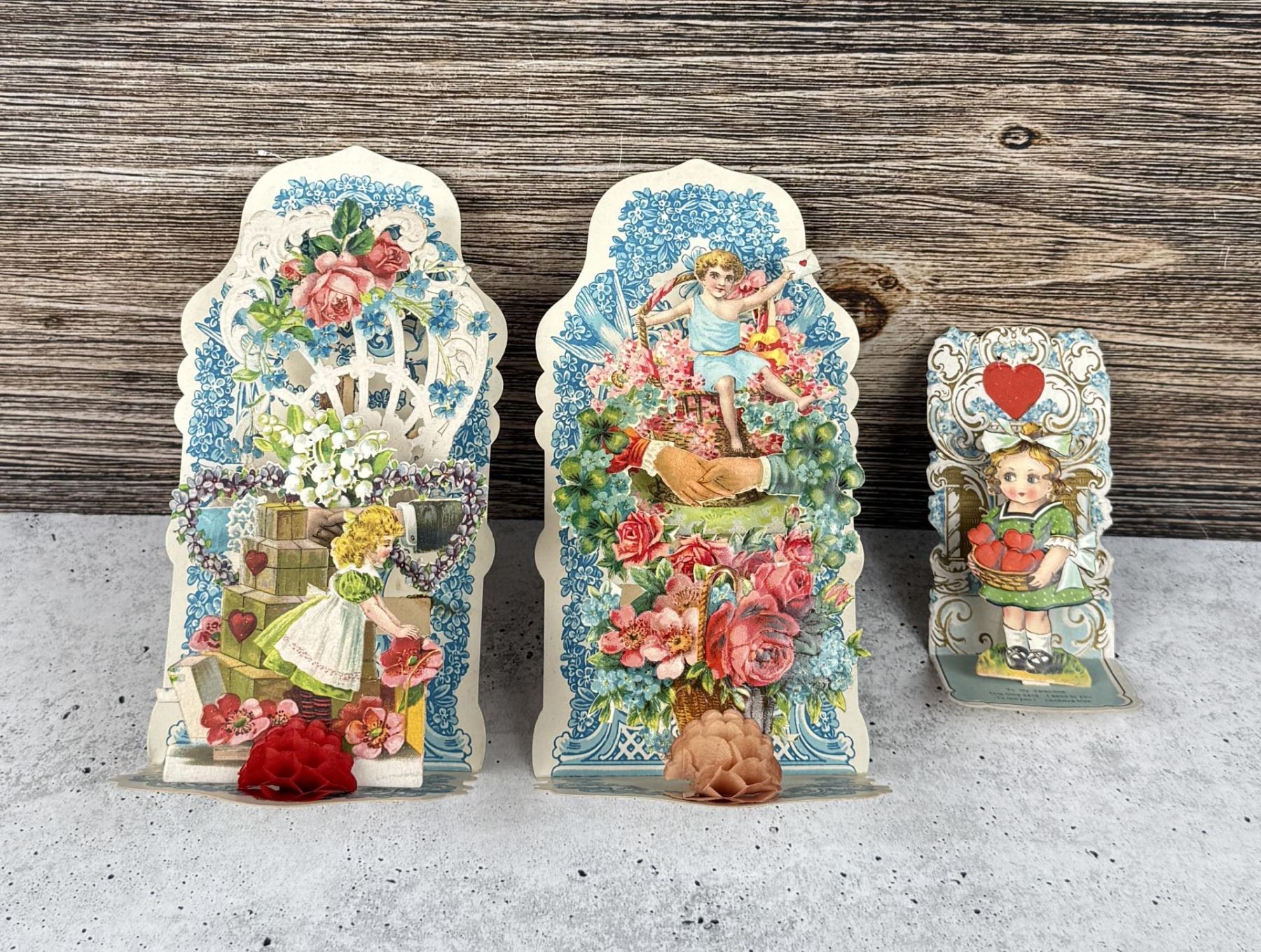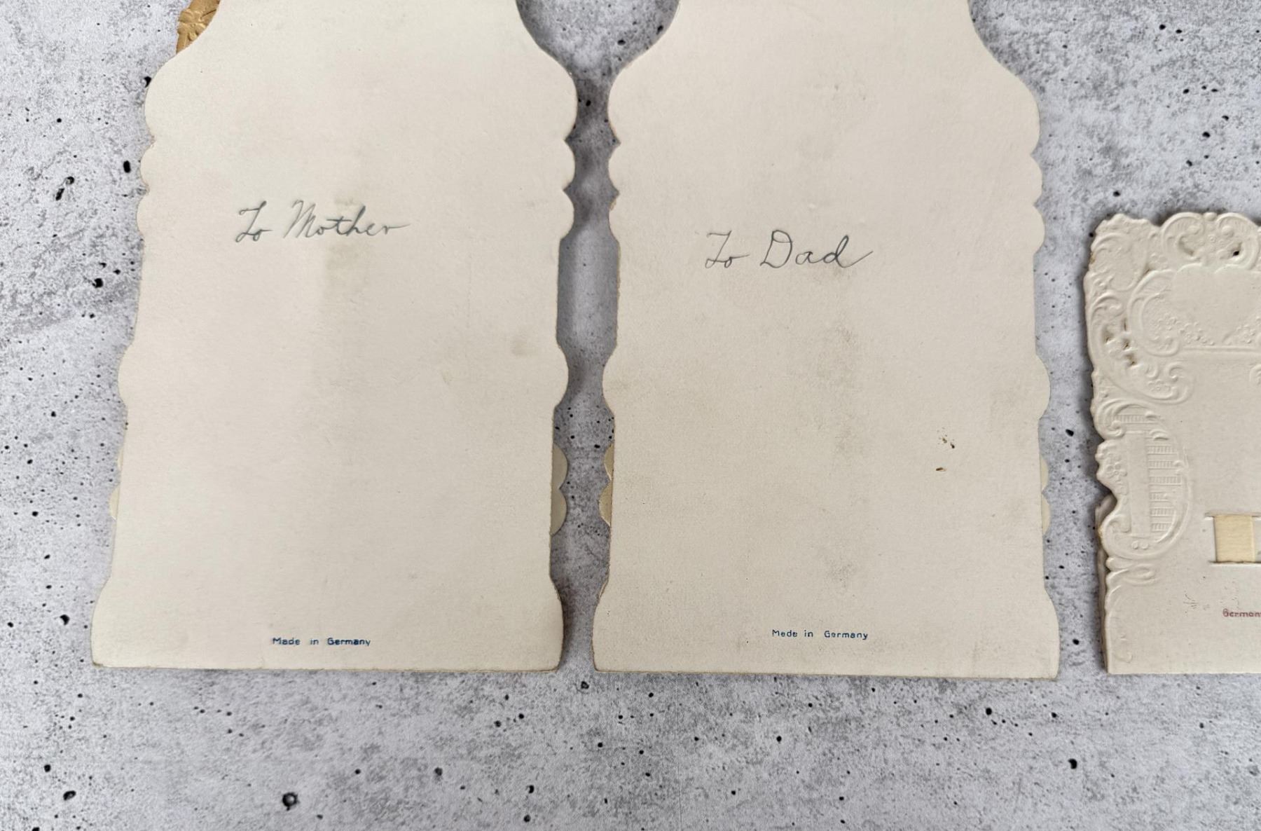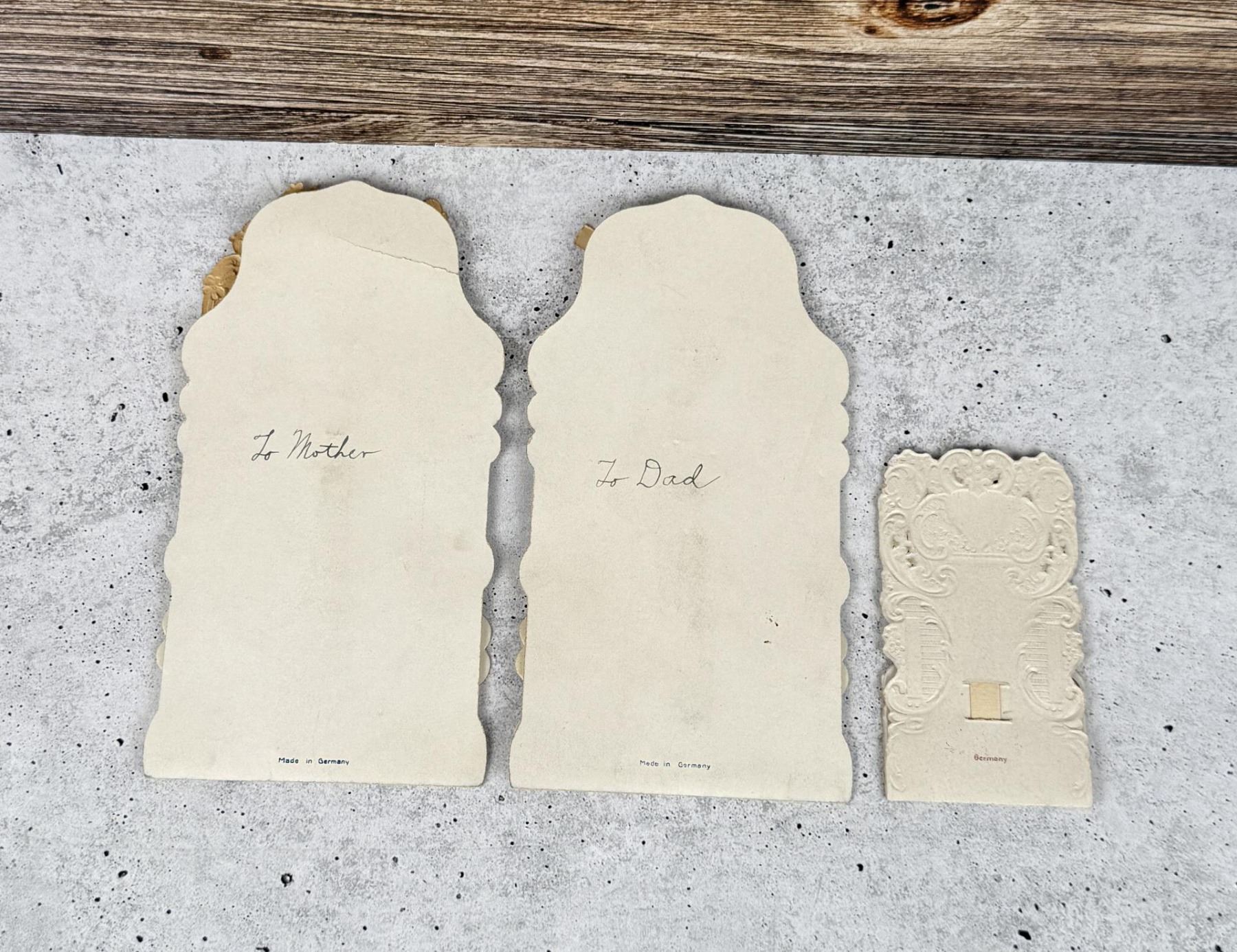 Nice early German die cut cards. Largest is 7" by 3 5/8".