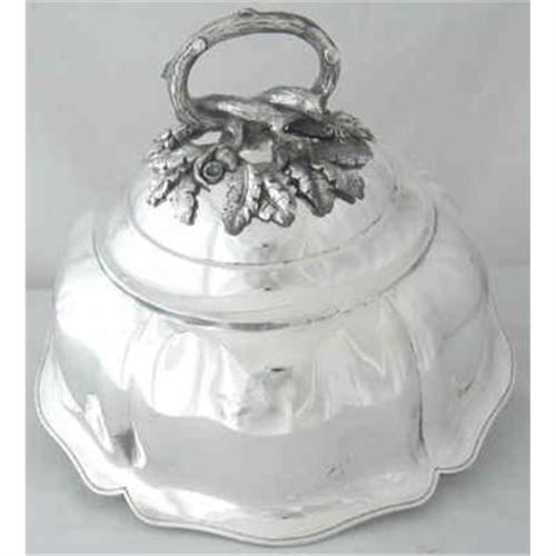 A beautiful large, heavy silver plated Victorian Food Dome c1875 with a detachable large stylised handle that is acorn leaves and branches with round supports for what presumably were ivory color or silver acorns. This is in immaculate condition and has been professionally replated with heavy silver plate by the best in the business!! A stunning piece.