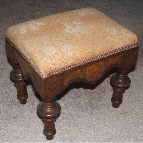 American. Victorian. Mid 19th century. Walnut with burl panels. 10" high by 11" wide.