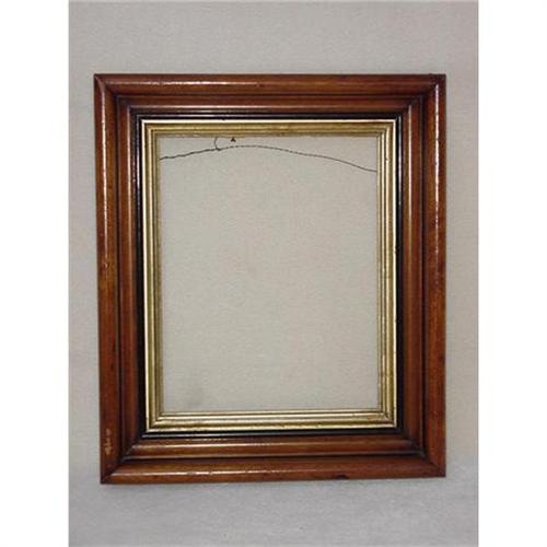 A victorian walnut shadow box frame, 8' X 10" opening, 11 3/4" X 13 3/4" outer demensions. Frame is highlighted with black accents and the original gold leaf liner and old wavy glass. The condition is very good, there is some slight wear to the gold leaf liner, but the overall condition is very good.
