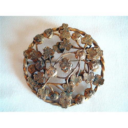 Exquiste Victorian Gilted Brass Brooch Sash Pin Shamrocks, Clover, Acorns</em></td>