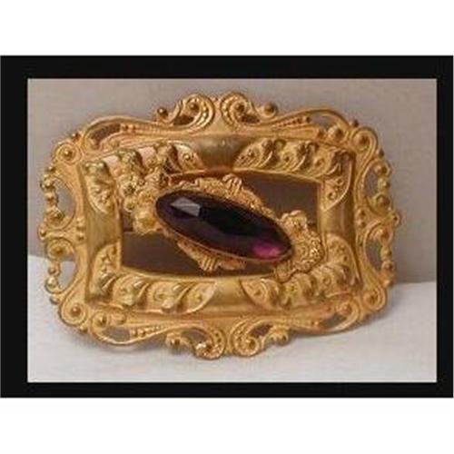<tr><td>Title:Victorian Gilt Sash PIN with Faceted amethyst </td></tr>