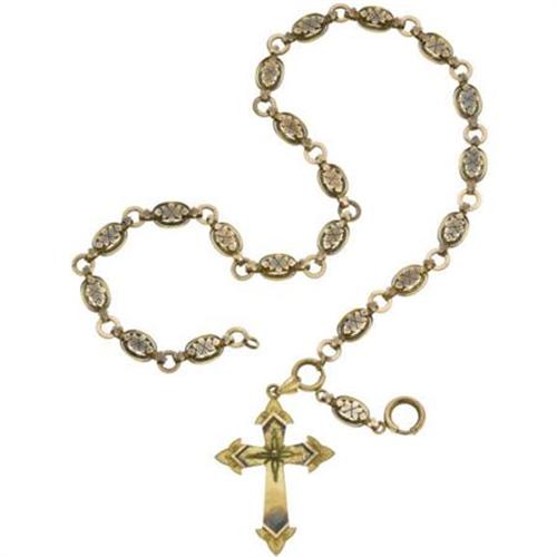 <B>Victorian Gold-Filled Cross Necklace</B></I><BR><BR>The removable cross pendant is yellow gold-filled and suspends from a fancy link chain in yellow and white gold-filled, measuring 20 inches. Gross weight 42.20 grams. <BR><I>Pendant Dimensions: 2-5/8 inches x 1-1/2 inches</B></I> <B>Condition Report:</B> Good condition.<BR>Moderately tarnished.<BR><BR><b>Shipping:</b> Miscellaneous Collectibles, Smal (<a target="_blank" href="http://www.heritageauctions.com/common/shipping.php">view shipping information</a>)