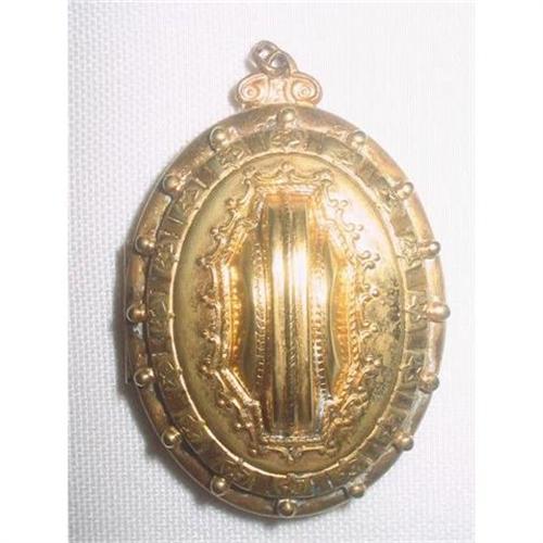 <tr><td>Title:Victorian Gold Filled Etruscan Photo Locket</td></tr>