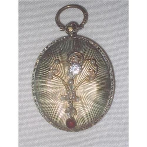 Rare pocket watch style locket with beautiful jewelled overlay.</em></td>