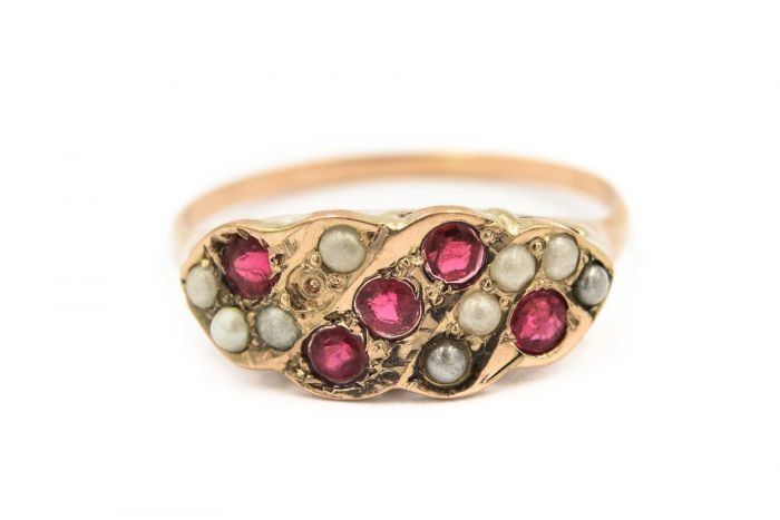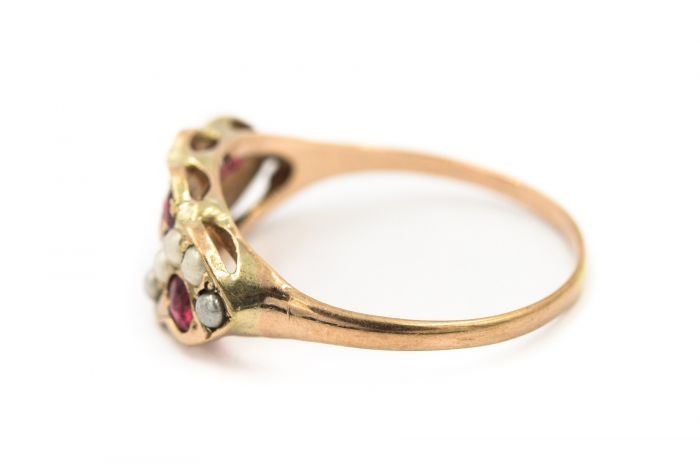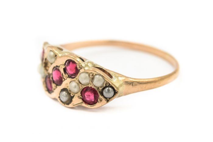 Style: Victorian Yellow Gold Pearl And Ruby Ring
