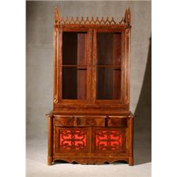 Victorian Gothic Revival Walnut Bookcase-on-Cabinet