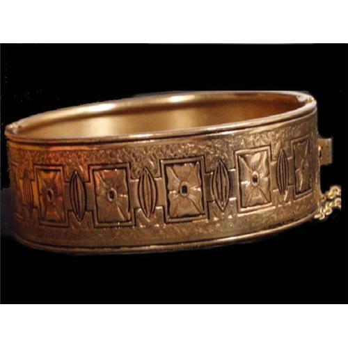<tr><td>Title:Victorian HINGEd Enamel Gold Vintage bracelet</td></tr>