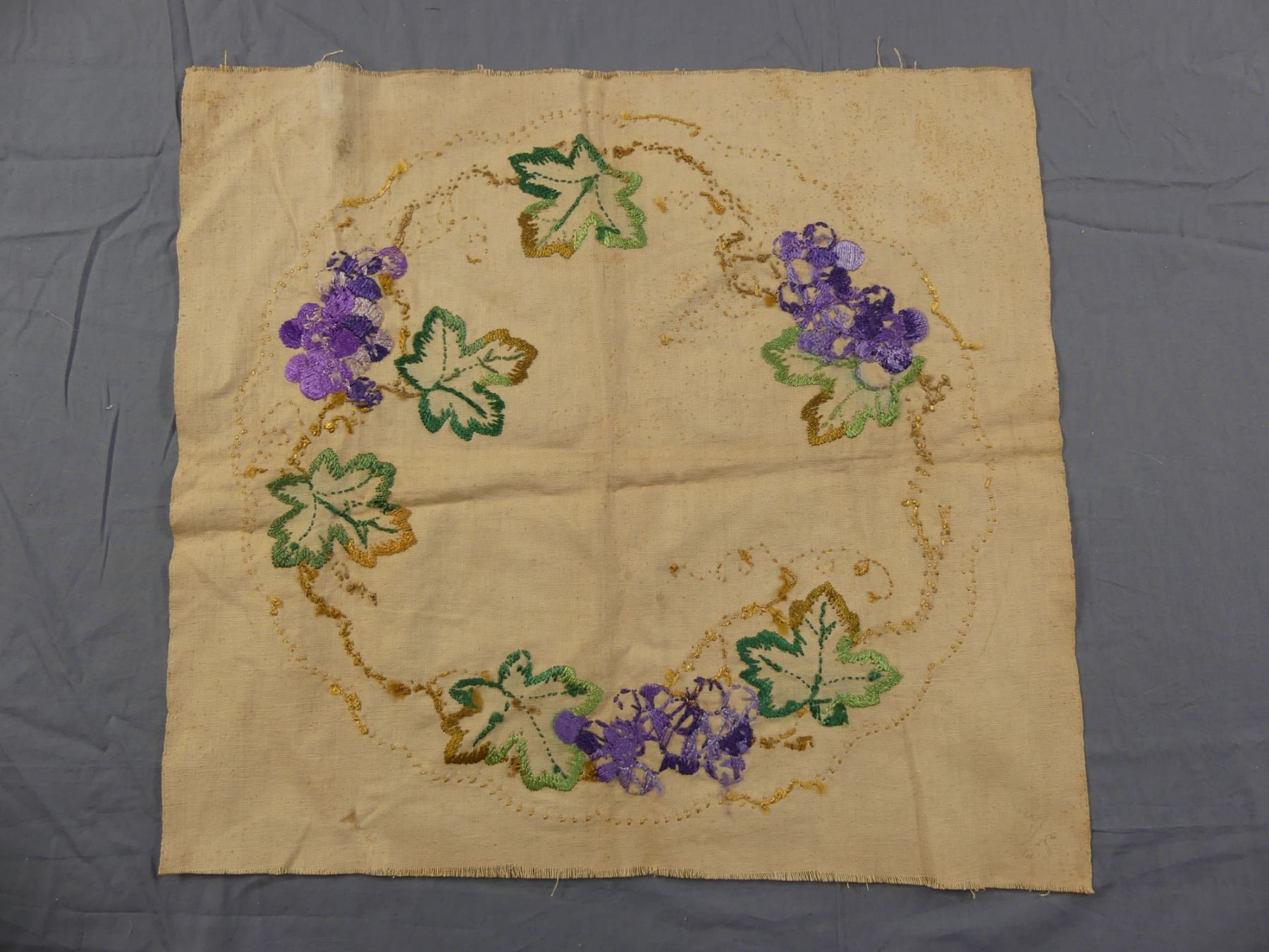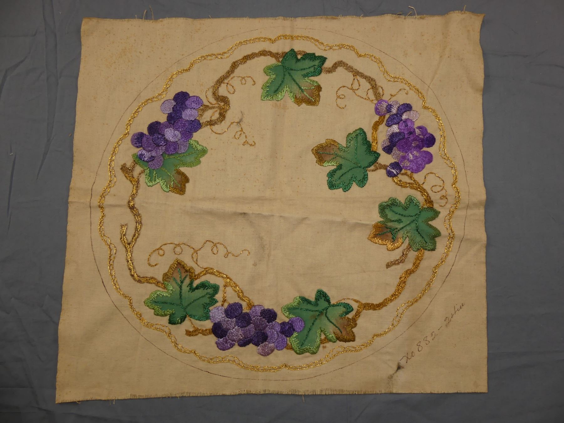 Victorian Hand Embroidered Round Pillow Front