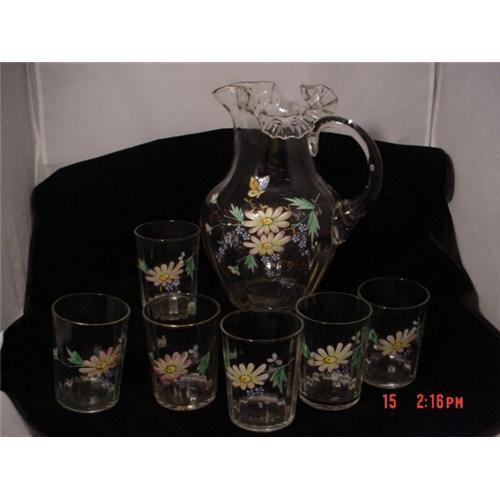 RARE FULL SET-Victorian Hand Enameled Lemonade Set</em></td>