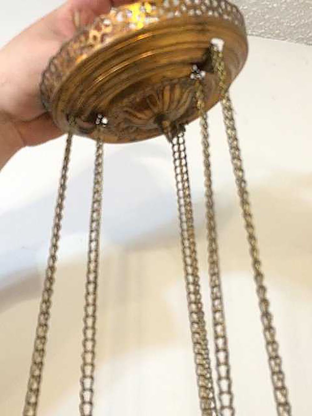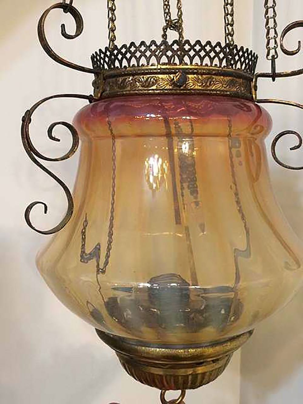 Victorian hanging lamp, Amberina glass, has original oil glass lamp, is adjustable. From Victorian Era, 1860's, all original.