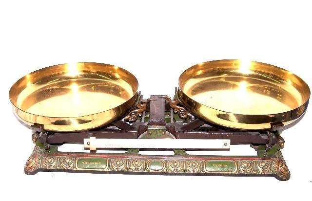 Original Henry Troemner balance scale. Approx 30" x 10" x 12" in size and 45lbs. Scale is in great condition with Henry Troemner signed in both scales and on side. Well crafted with crane like birds as weight identifiers. Outstanding scale.