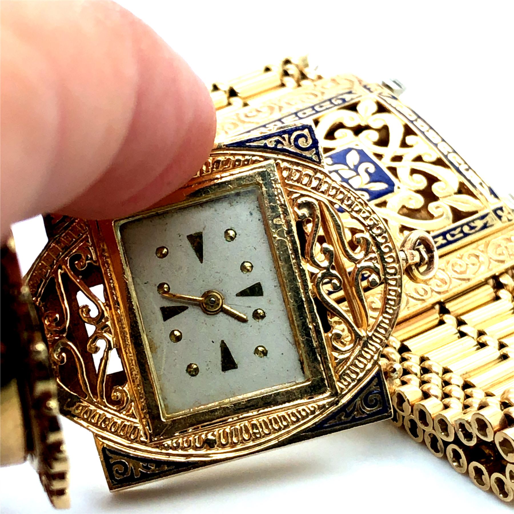 TITLE DESCRIPTION: Retro Victorian Style Enamel Watch Bracelet Enamel Hidden Watch Bracelet