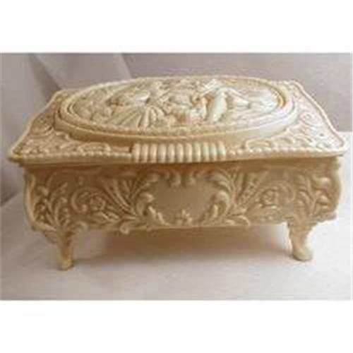 <tr><td>Title:Victorian Ivorine Celluloid Footed Figural box</td></tr>