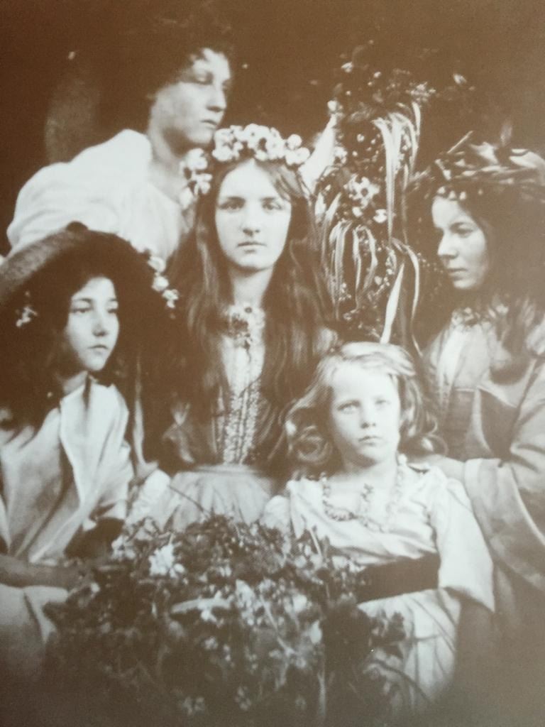 Sepia toned photograph print, on heavy card stock, printed in the early 1990's, as inventory for American Heritage Galleries. Depicts Victorian era ladies during a May Day Festival. 11" X 14".