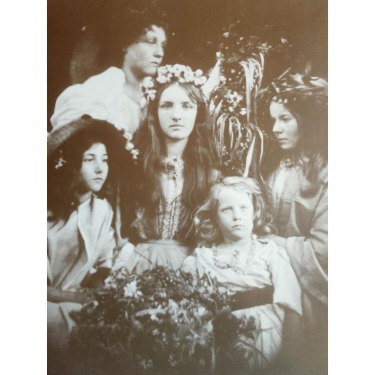 Sepia toned photograph print, on heavy card stock, printed in the early 1990's, as inventory for American Heritage Galleries. Depicts Victorian era ladies during a May Day Festival. 11" X 14".