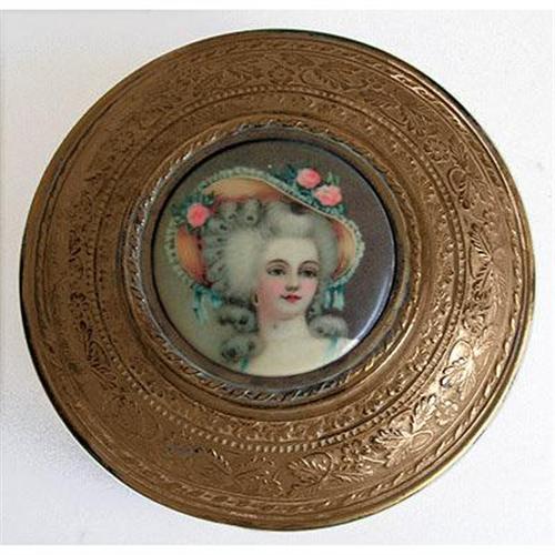 <tr><td>Title:Victorian Lady Portrait on Brass Powder Jar</td></tr>
