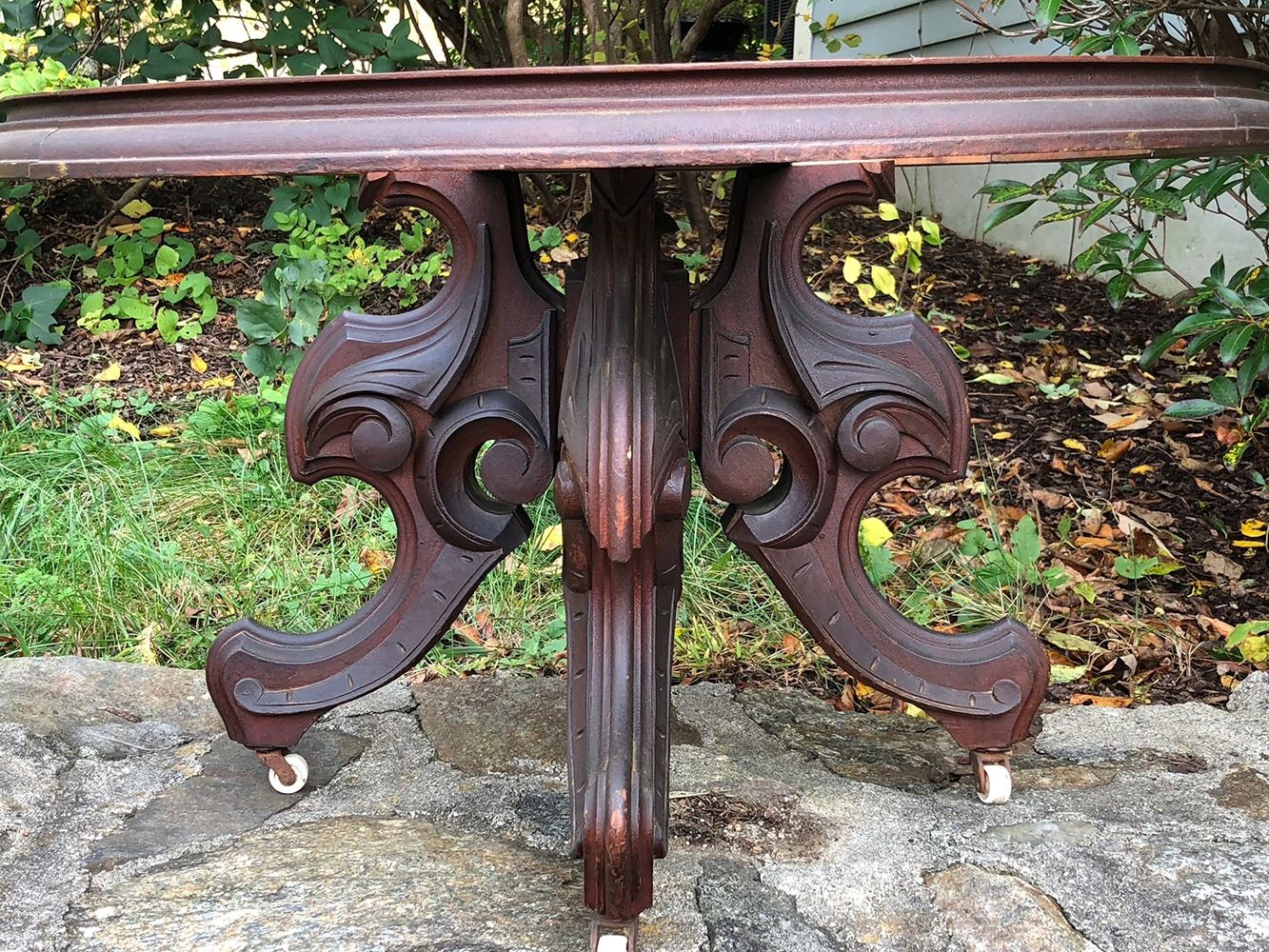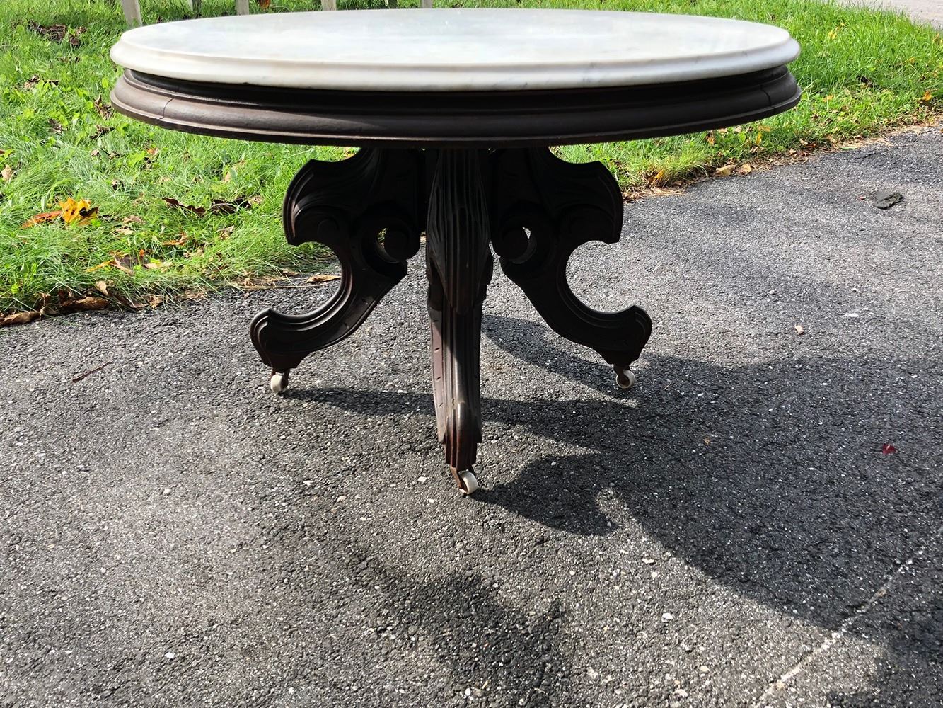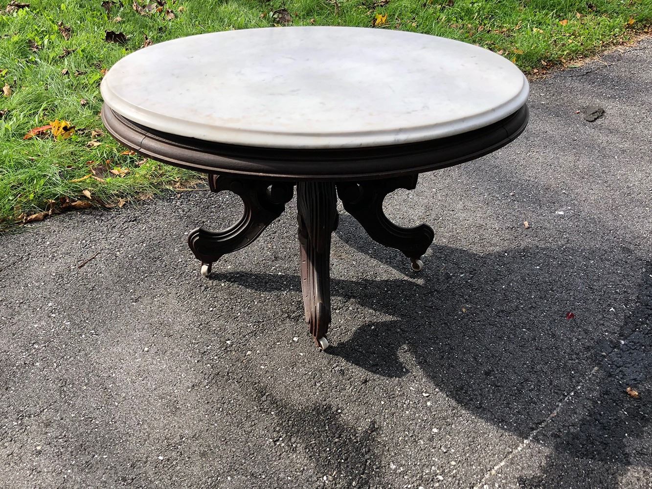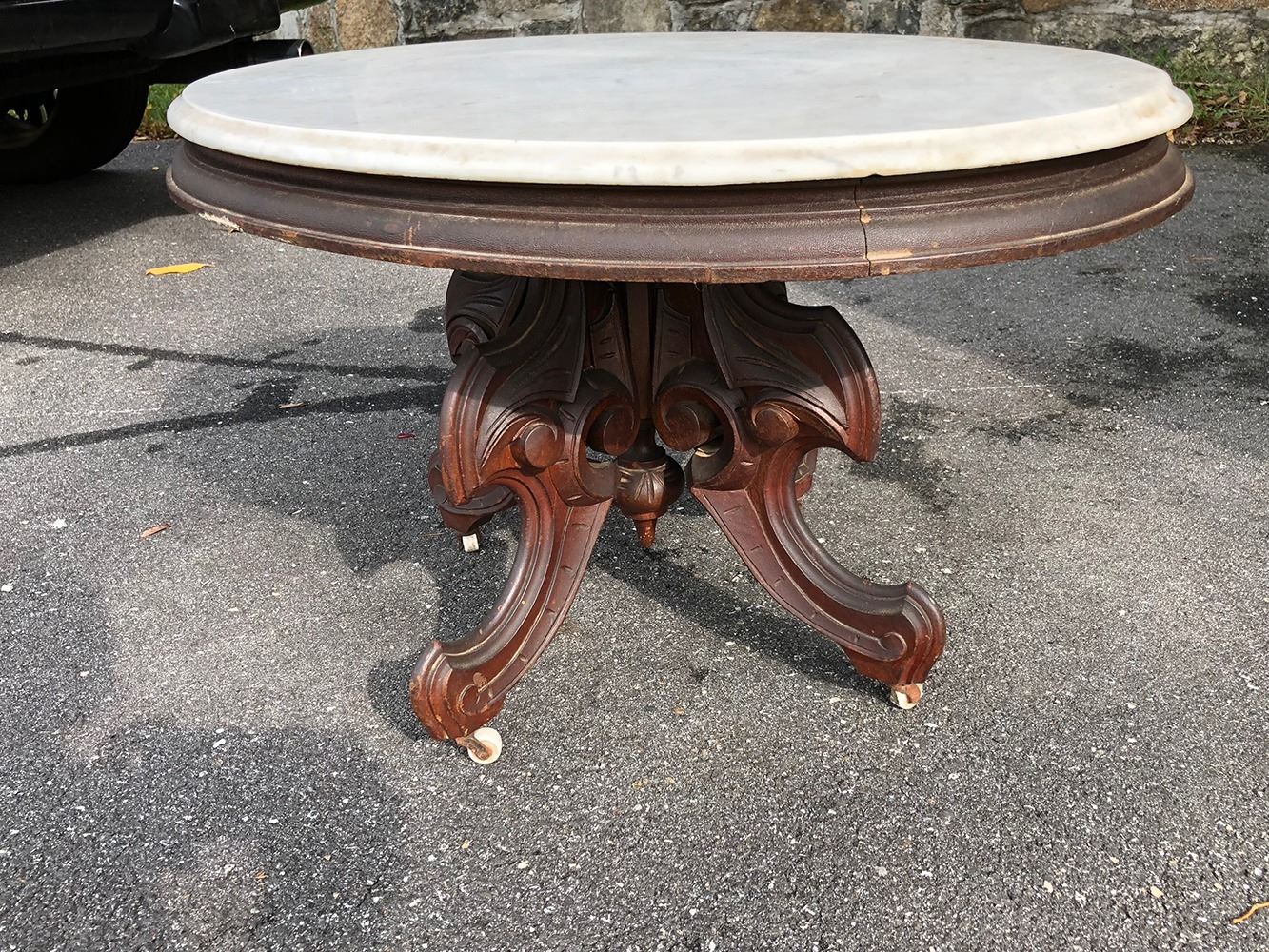 Victorian Oval Walnut Marble Top Coffee Table, original finish.