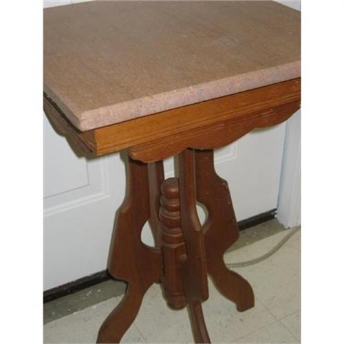 Fine Victorian side, lamp table with a light brown marble top. The base is solid walnut with classic Victorian craftsmanship, very sturdy, the top is in great shape too. It measures 18.5"D x 20"W x 29"H. We buy entire estates and pass the savings on to you. Please visit our 2 stores located near Atlanta, Aardvark Antiques, or our online store Aardvark-antiques. Thanks!