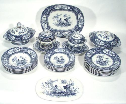 Victorian Mintons and Hollins ironstone dinner service, transfer printed with a blue and white ' Jap