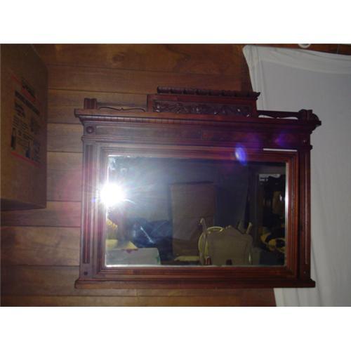 This is a Victorian Revival Style Mirror circa 1880's and is walnut. The Mirror is in very good shape with beautiful carving on the crown and gorgeous veneer around the frame, except on the crown one small piece is missing which is not noticeable.