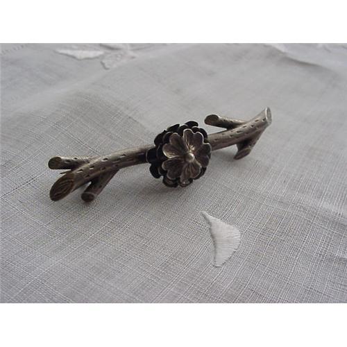 Beautiful Victorian silver brooch with a naturalistic theme. This circa 1880s?s brooch has a lovely flower on a branch, all with a textured and striking details just as if it was a branch. Truly beautiful and so unique! It measures about 2 ¾ inches in length; with original working c catch closure, all in excellent condition. What wonderful example of the Victorian Naturalistic period in jewellery. Please be assured all of our items are smoke free, perfect for gift giving or immediate use. Thanks and enjoy your day!
