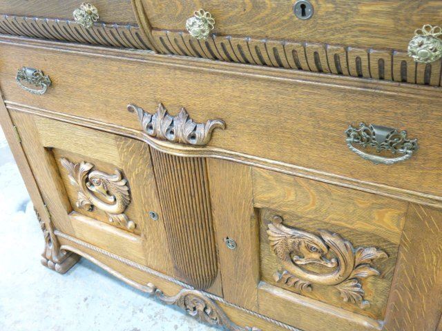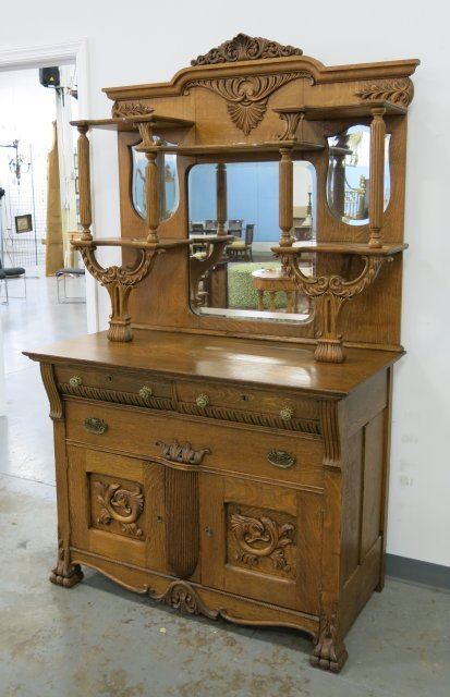 With curio top. Approx. 80" H x 48" W x 24" D. Refinished, excellent condition.