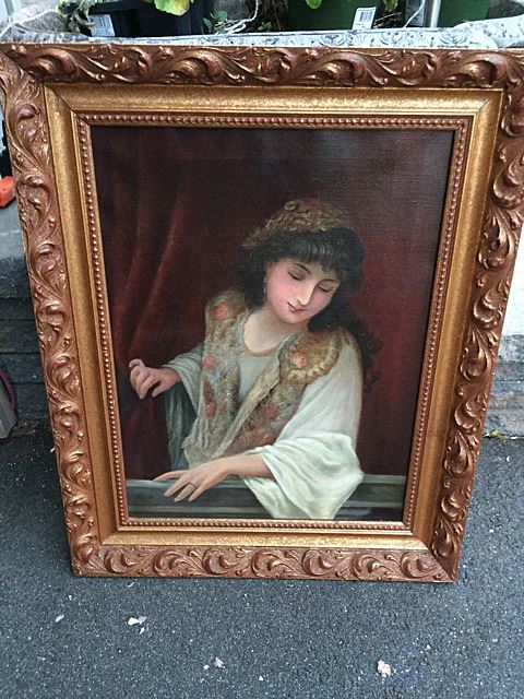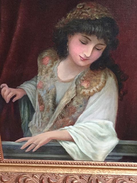Unsigned Victorian oil painting of a Shakespearean actress in gold gilt frame.