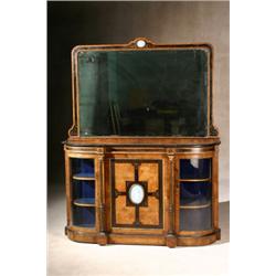 Victorian Ormolu and Light Blue Jasperware Mounted Parcel Gilt and Inlaid Burlwood Side Cabinet and Mirror