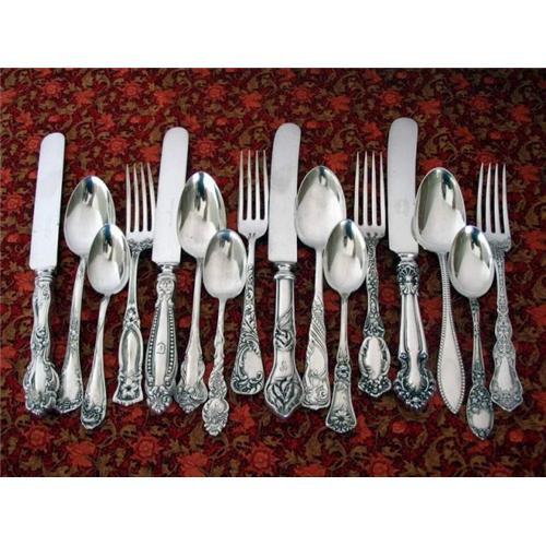Up for auction is a mixed service for four featuring Ornate Victorian and lushly detailed Art Nouveau patterns, primarily form the period between 1891-1908. The set features many sought after COLLECTIBLE patterns and hard to find hollow knives. These are beautiful and very old patterns from a bygone age where attention to detail was the standard.