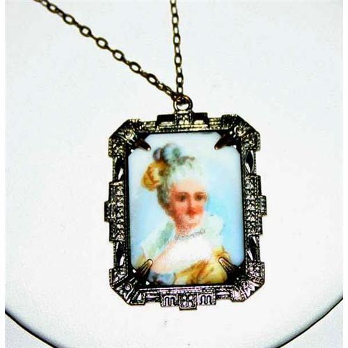 <tr><td>Title: Victorian Painted Porcelian Portrait Necklace</td></tr>