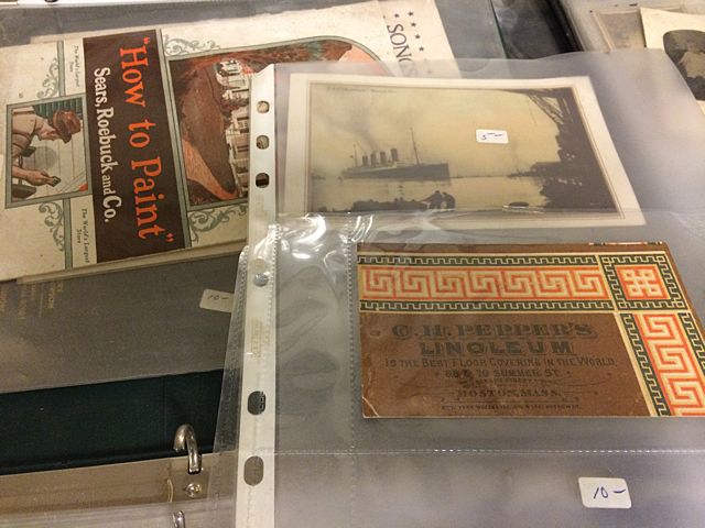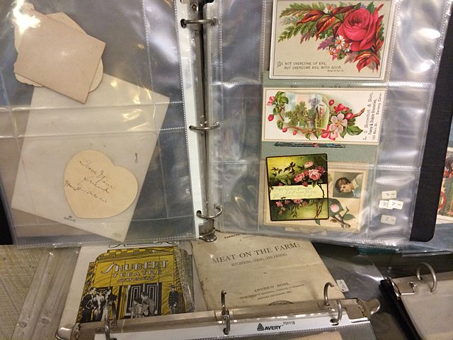 Vintage lot incuding many postcards, valentine cards, store tags, memorabilies, catalogs, from the Victorian era. Turn of the century manuels, early photography, wholesale grocer's list, etc. Very nice large lot of vintage paper memorabilia. These items may be picked up in Torrington, CT. Appointment time will be scheduled after auction date.