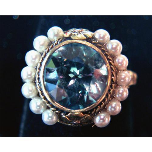 <tr><td>Title:Victorian Pearl Blue Zircon 14K G Repoussé Ring</td></tr>