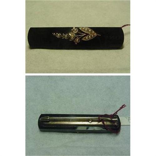 <tr><td>Title:Victorian Pearl and Black Onyx Bar Pin</td></tr>