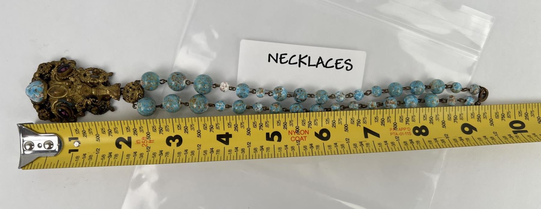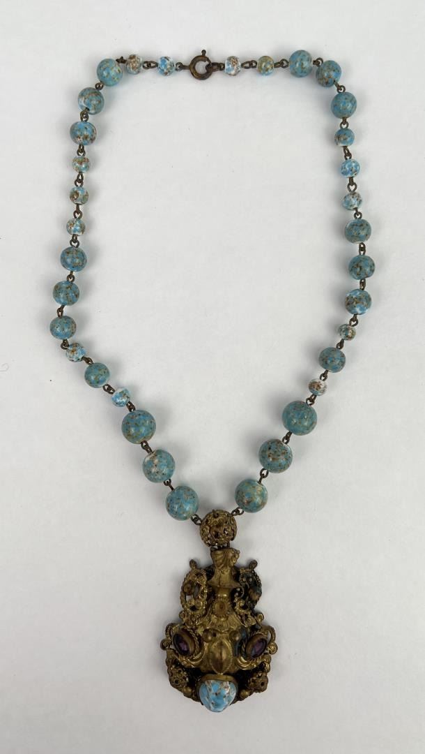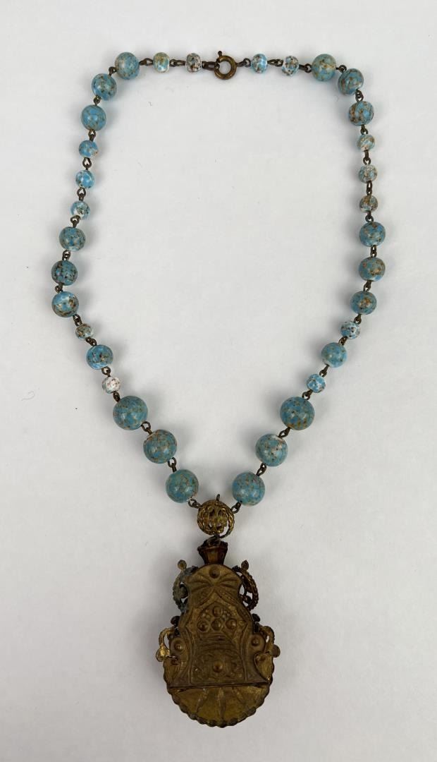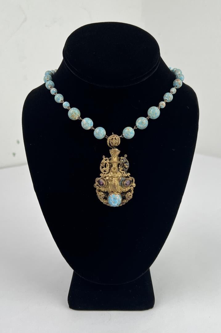 Very pretty old necklace. Porcelain glazed balls resemble Turquoise.
