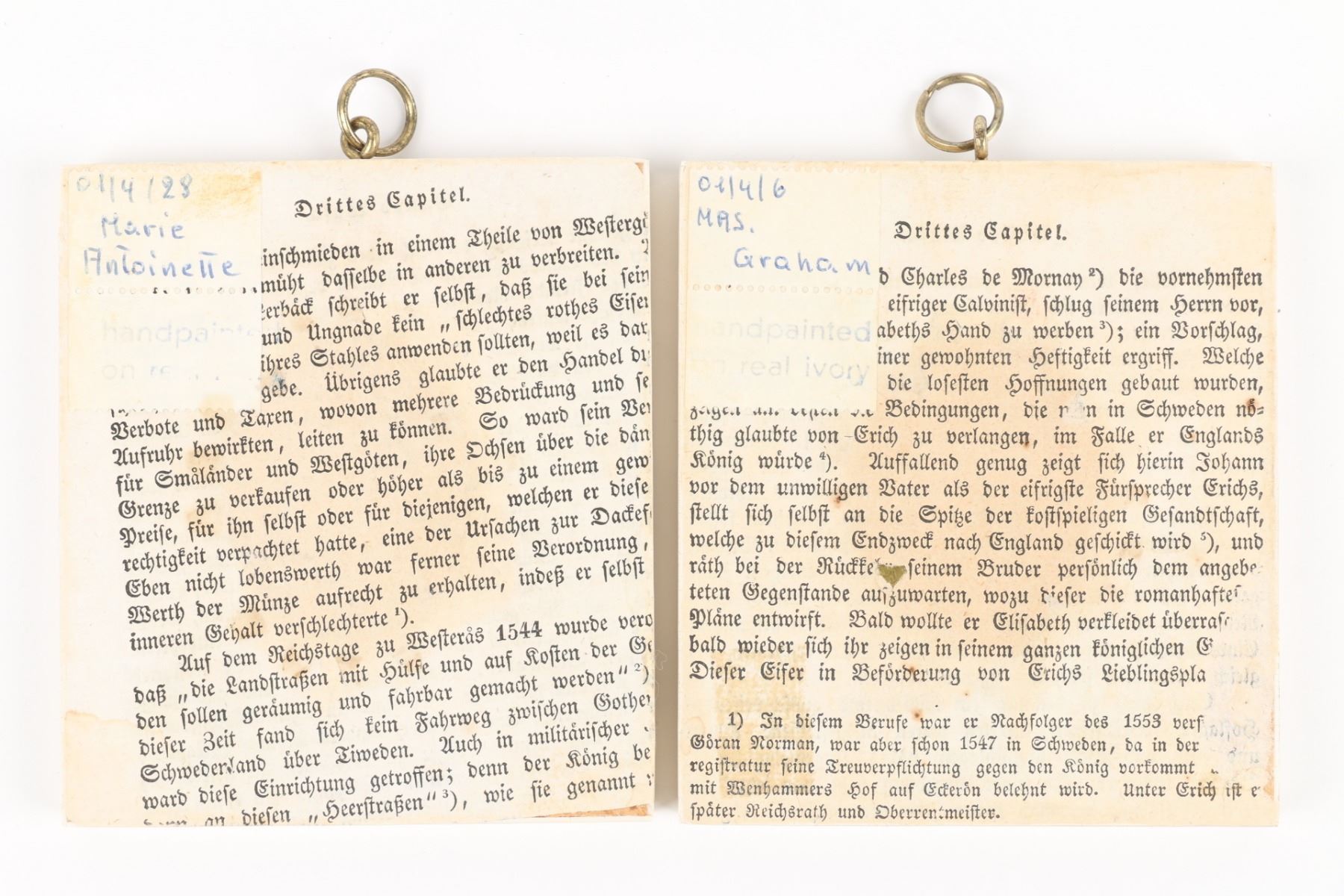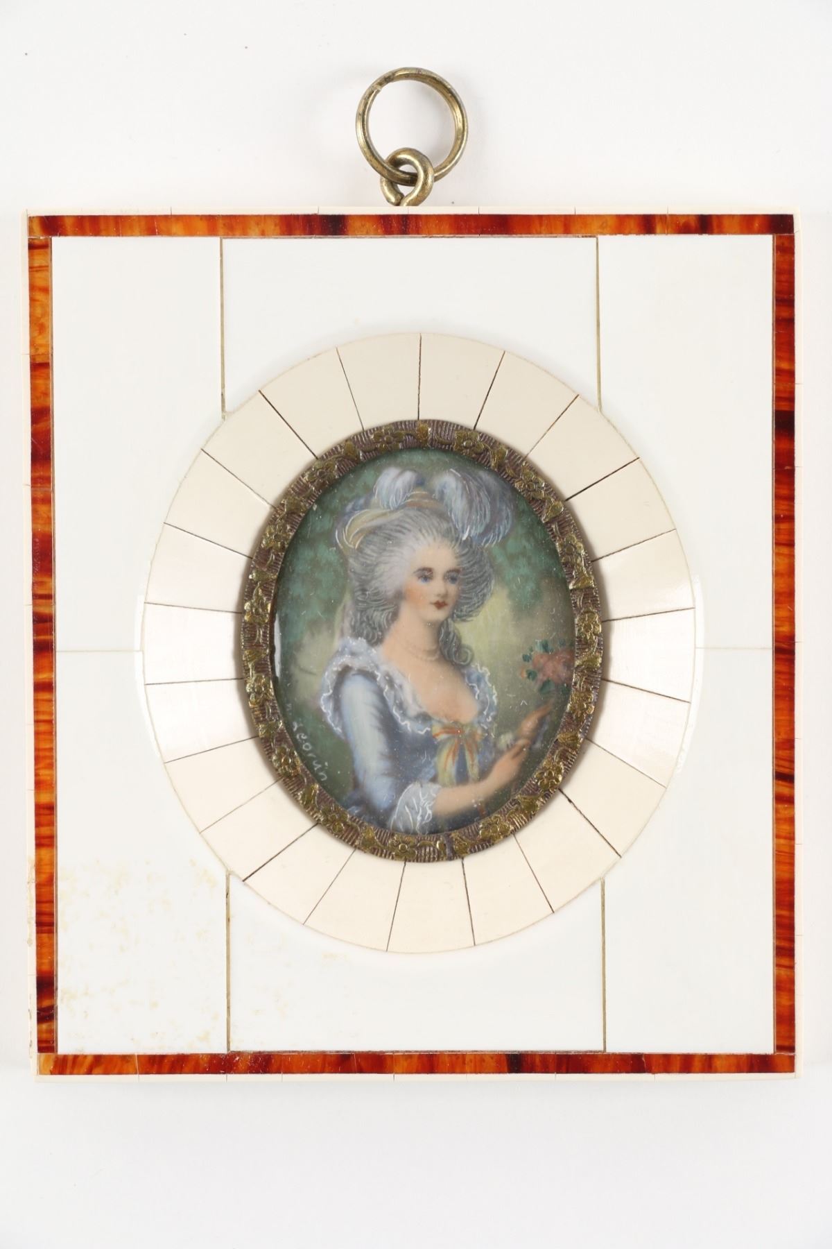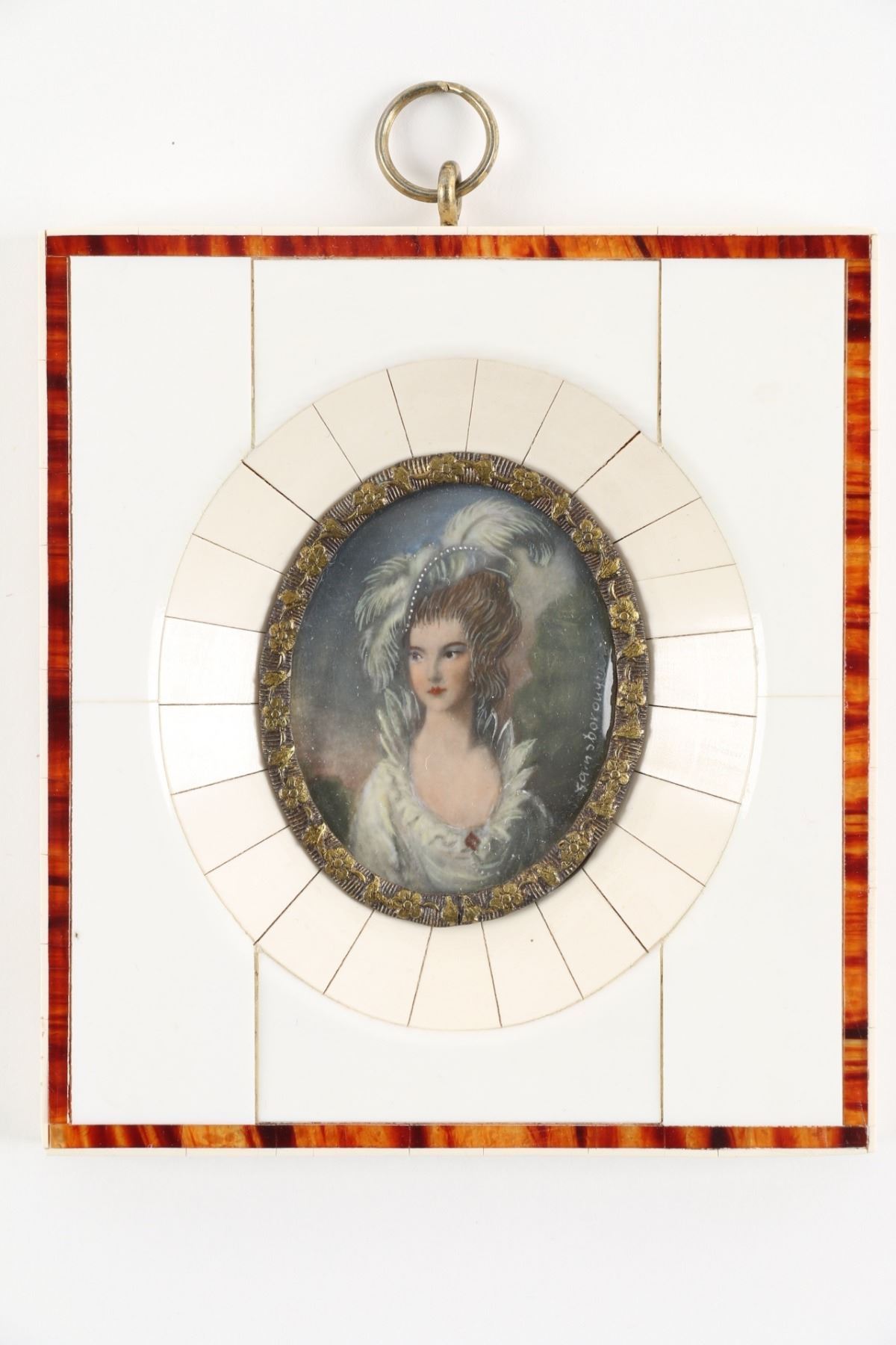 Lot 362 - Pair (2). Framed, painted on ivory. Provenance outlined on reverse. 4" x 3.5" x .5". $100-200