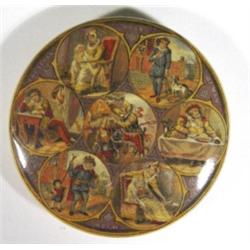 Victorian Prattware pot lid 'Seven Ages Of Man', 10cm diameter