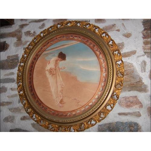 This picture is stunning!! a beautiful atmospheric image of gorgeous woman in period dress picking up shells.Mounted in original pierced and gilded