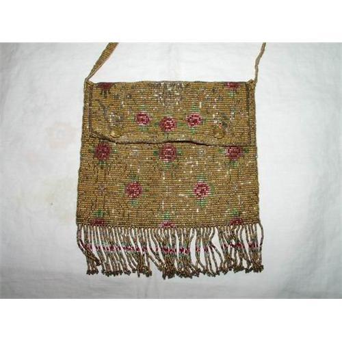 </font></strong>Small heavy beaded and fringed Victorian purse. Beautiful red rose design on gold background. Satin lining, hand stitched. Handle needs repair as seen in photo, easily done and reflected in low price of item. Measures 4.75" x 4". Very pretty little piece.</font>