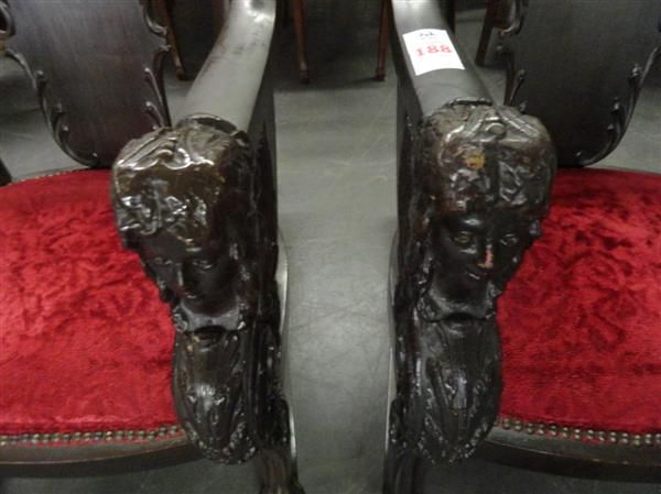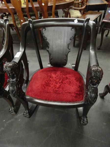 Victorian Red Velvet Carved Lady Figure Head Arms Rocker
