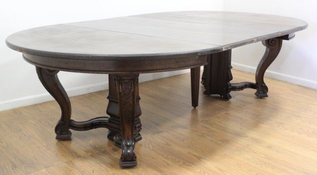 With carved base. Approx. 30" H x 60" W. With 5 leaves, approx. 15 1/2" W.