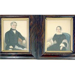 Victorian School, pair of watercolour miniatures, half length portraits of a seated lady and gentleman, 5.25ins x 3.75ins £200-250