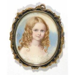 Victorian School watercolour on ivory miniature, Portrait of a child, Oval, 2 x 1.5 ins. £200-300
