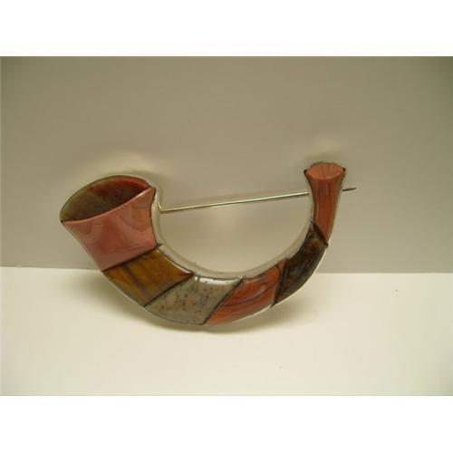 <tr><td>Title:Victorian Scottish Agate Horn Brooch</td></tr>