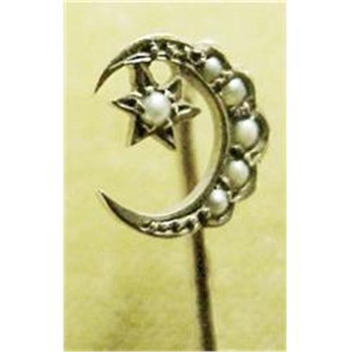 Lovely English detailed stickpin, featuring Moon and the star, encrusted with pretty seed pearls 6 in total. Excellent condition. Stickpin measures about 2 3/4" long, US Buyer please pay 6.00 for shipping plus insrance, We prefer Paypal payments, Thanks for looking!