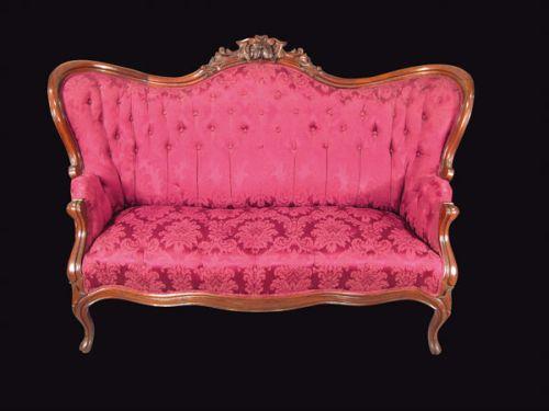 Victorian Settee, walnut with original finish and professionally upholstered. 60 X 38 inches.
