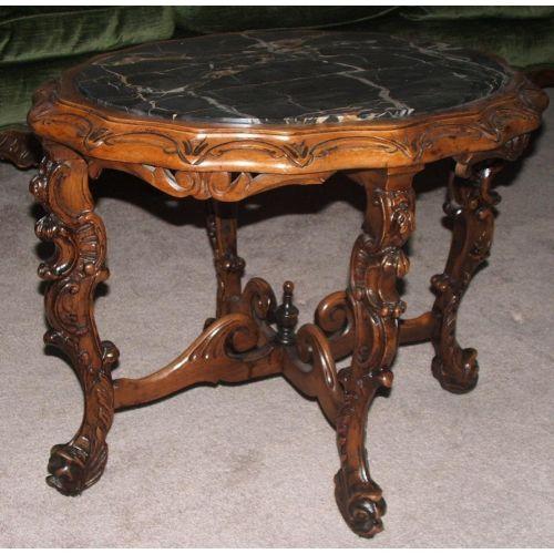 European. Victorian. Late 19th century. Walnut. Black marble top. 19" high by 26" wide.